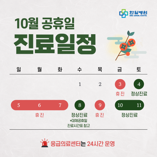 2025년 10월 공휴일 진료 일정 안내