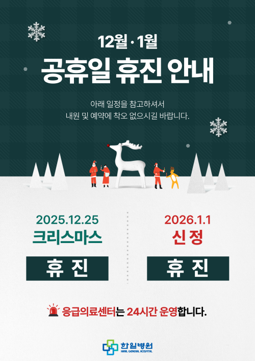 12월 25일 · 1월 1일 공휴일 진료 일정 안내2025-12-23