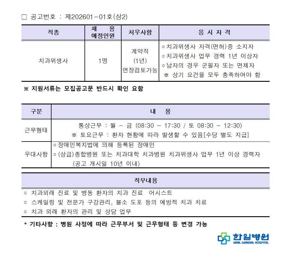 | 모집 직종 | 의료기사직, | ||||